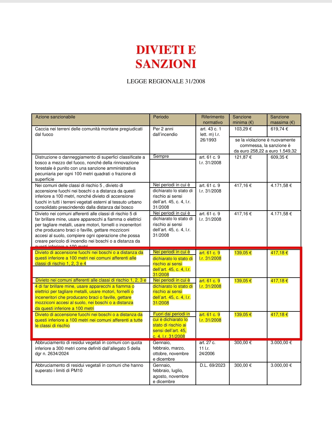 Applicazione delle norme relative alla difesa dei boschi dal fuoco (Legge quadro in materia di incendi boschivi n. 353/2000, l.r. 31/2008, R.R. 5/2007).